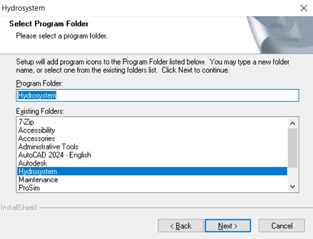 Name of folder in “All Programs “ start menu section. Default value is "Hydrosystem" |