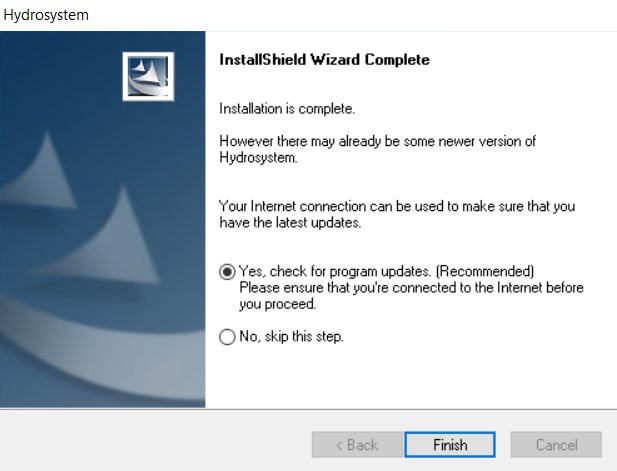 Upon completion of the installation of the Hydrosystem, you will be prompted to enable automatic program updates: