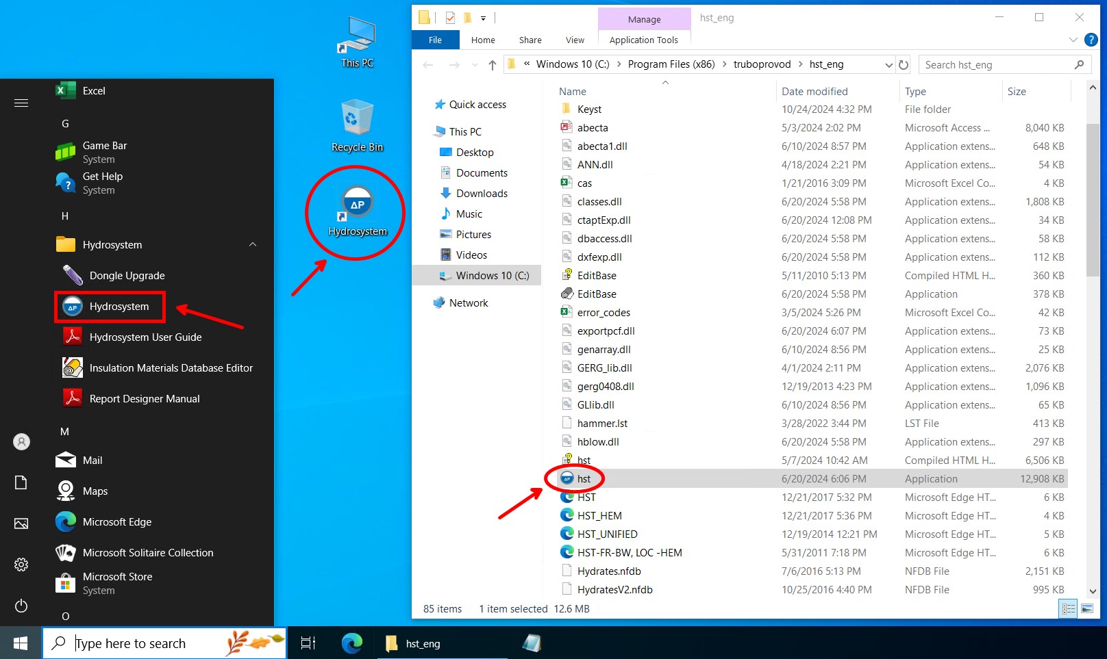 You can launch the Hydrosystem using the program icon in the Start menu, the shortcut on the desktop, or by directly launching the hst.exe file from the installation directory: