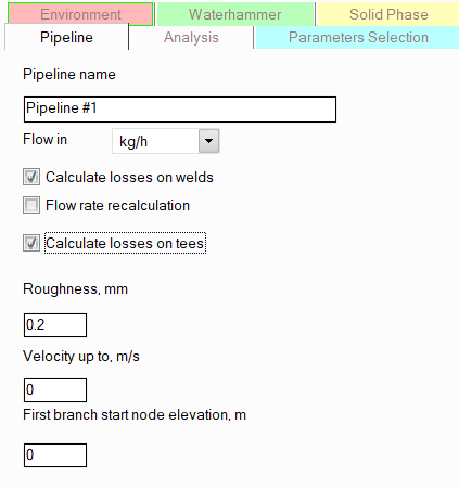 calculate losses on tees - this option allows you to disable the consideration of the hydraulic resistance of tees when calculating a pipeline, for example, to speed up the calculation or to improve the convergence of calculations of very complex systems with very difficult to calculate hydraulic regimes (which in practice is extremely rare). Since the hydraulic resistance of tees can be very significant in the total resistance of the pipeline, it is not recommended to disable this option unless necessary;