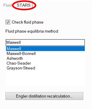 Checking the phase state during calculations using the STARS library is optional; you can enable/disable it by going to the STARS tab of the Object Properties window for the fluid: