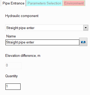 quantity - this parameter is usually not used for the pipe entrance. It is used for other piping components (for example, for valves or bends) when modeling several identical elements. In this case, you can enter the quantity of these elements in this field and the hydraulic resistance and heat losses of this element will be multiplied by the specified value. Since there are unlikely to be several pipe entrances in one pipeline branch, this option is of no practical interest for it.