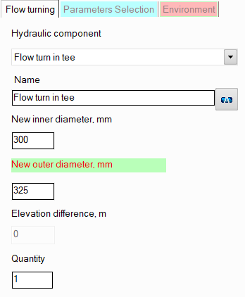 name - by default, the name of any piping component coincides with its type, but if necessary, the name can be changed in this field. When changing the hydraulic component type (when selecting different types of flow turns), its name will also change, but only if it has not been previously changed to another manually. Specify the name that you would like to see for this element in reports with calculation results. To display the name of a pipeline element on the diagram, click the corresponding button to the right of its name;