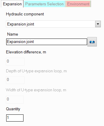 name - by default, the name of any piping component coincides with its type, but if necessary, the name can be changed in this field. When changing the hydraulic component type (when selecting different types of compensators), its name will also change, but only if it has not been previously changed to another manually. Specify the name that you would like to see for this element in reports with calculation results. To display the name of a pipeline element on the diagram, click the corresponding button to the right of its name;