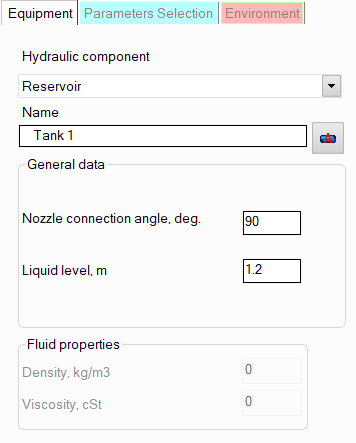 name - by default, the name of any piping component coincides with its type, but if necessary, the name can be changed in this field. When changing the hydraulic component type (when selecting different types of equipment), its name will also change, but only if it has not been previously changed to another manually. Specify the name that you would like to see for this element in reports with calculation results. To display the name of a pipeline element on the diagram, click the corresponding button to the right of its name;