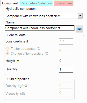 Component with known loss coefficient is used to model a wide variety of elements of a piping systems (most often non-standard types of valves, fittings and other devices) for which the values of their local resistance coefficients are known or can be calculated/found in reference literature/passport characteristics.