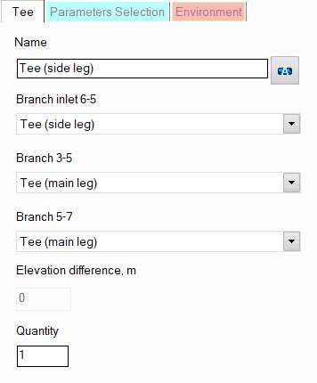 quantity - this parameter is usually not used for tees. It is used for other pipeline elements (for example, for valves) when modeling several identical elements. In this case, you can enter the number of these elements in this field and at the calculation the hydraulic resistance and heat losses on this element will be multiplied by the specified value. Since there are unlikely to be several identical tees in one pipeline branch, this option is of no practical interest for it.