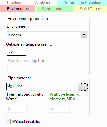 indoors - for pipelines located indoors. The indoor air temperature is specified on the "Analysis" tab for the pipeline;