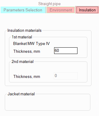 Please note that the thermal conductivity of metallic materials is usually quite high, especially compared to the thermal conductivity of typical thermal insulation materials (which is 3 orders of magnitude lower than that of metals). Therefore, for steel pipes (including thick-walled ones), the influence of the pipe wall on the heat exchange between the fluid in the pipe and the environment can most often be neglected. In this case, you can simply not specify the pipe material, and then the thermal resistance of the pipe wall will not be taken into account in the calculation. However, for pipes made of non-metallic materials (polyethylene, PVC, etc.), whose thermal conductivity is usually 1-2 orders of magnitude lower than that of metals, the influence of the thermal resistance of the wall on heat exchange with the environment can be noticeable. Therefore, for such materials, it can be taken into account in the calculation by specifying the wall material or manually setting its properties. In case of doubt (for example, if you are not sure what thermal conductivity the pipe wall you are planning to use has), do not forget that not taking the pipe wall into account at the heat calculation of a pipeline always goes "in reserve" (that is, when taking the pipe wall into account, heat losses will be lower than they would be without taking it into account).
