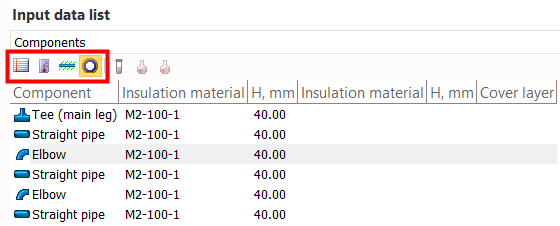 Hint: to avoid confusion about the specified location conditions, soil properties, thermal insulation parameters, etc. for various pipeline elements (branches, piping components), use the filter buttons at the top of the Input Data List window: