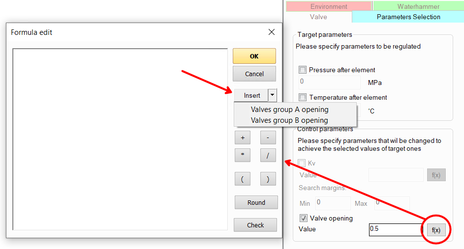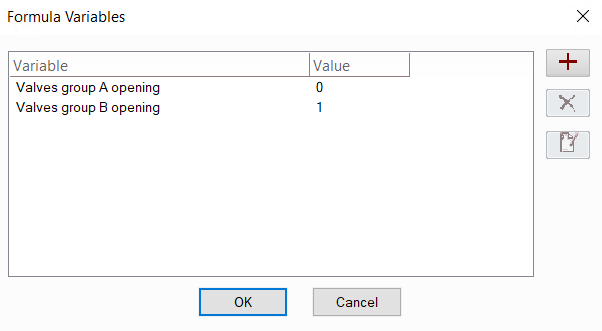 Thus, if you need to set/change any parameter for several elements of the pipeline at once (for example, valve closing angle, if you need to open/close several valves at the same time), instead of setting its value for each element separately, you can add a variable and set this variable (or some arithmetic expression involving it) in the formula for the control parameter. When setting/changing the value of this variable, it will immediately be assigned to all control parameters for which this variable is used.