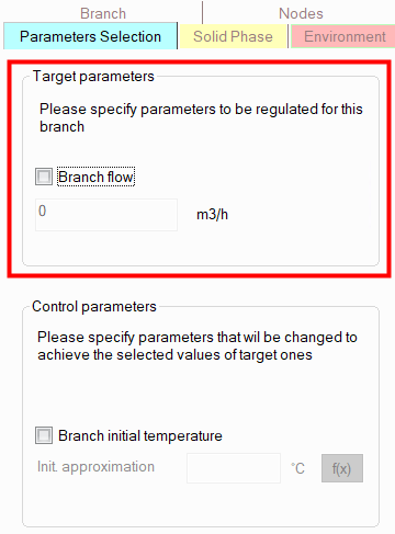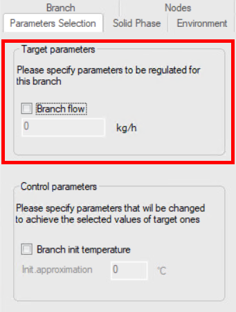 select the pipeline branch in the project tree in which the fluid flow rate needs to be controlled, open the "Parameters selection" tab of the Object Properties Window for it, check the "Branch flow" box as the target parameter and enter the required flow rate value;