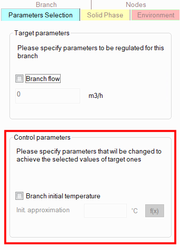 select the inlet branch of the pipeline in the project tree, for the initial point of which it is necessary to determine the required initial flow temperature, open the "Parameters selection" tab of the Object Properties Window for it, check the "Branch init temperature" box as a control parameter and enter the initial approximation of the temperature value (see below);