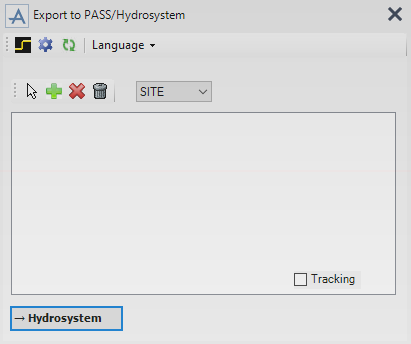 To export data to Hydrosystem, you need to click on the “=>Hydrosystem” button. The module dialog box will pop-up :