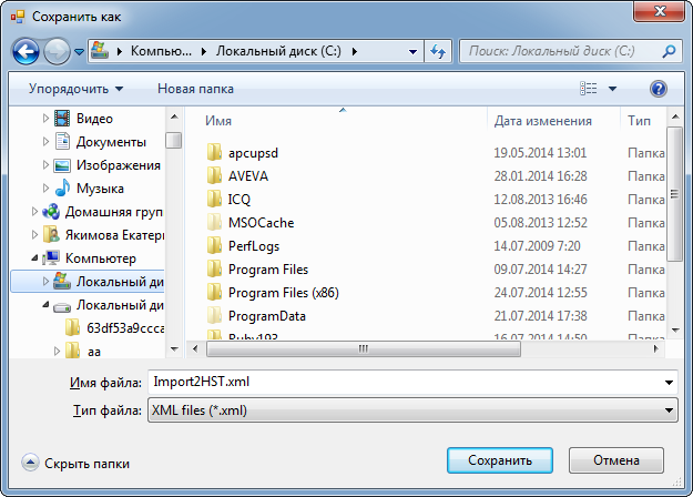A dialog window for saving the XML file with pipeline model will appear. The import of this file will be performed by Hydrosystem: