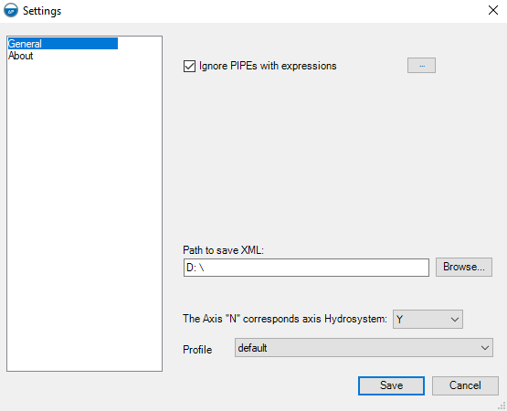 Path to save XML - Default path for saving the Open XML format file of Hydrosystem.