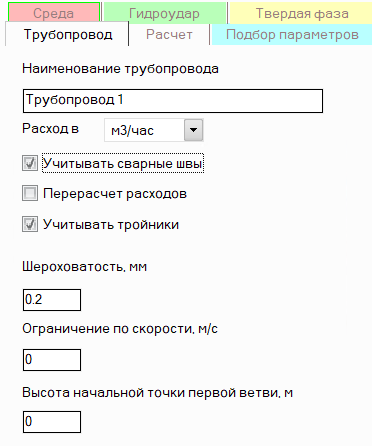 учитывать тройники - данная опция позволяет отключить учет гидравлического сопротивления тройников при расчете трубопровода, к примеру, чтобы ускорить выполнение расчета или чтобы улучшить сходимость расчетов очень сложных систем с очень сложными для расчета гидравлическими режимами (что на практике встречается крайне редко). Поскольку гидравлическое сопротивление тройников может быть очень весомо в суммарном сопротивлении трубопровода, отключать данную опцию без необходимости не рекомендуется;