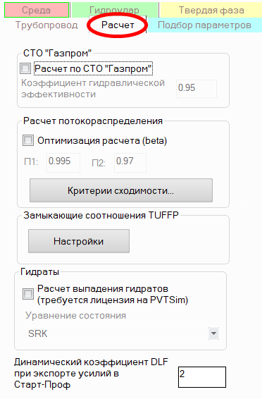 Замыкающие соотношения TUFFP - эта опция позволяет более гибко настроить так называемые "замыкающие соотношения" для гидравлического расчет двухфазного течения по методике "Unified model" проекта TUFFP.