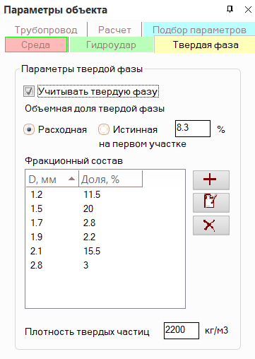учитывать твердую фазу - данная опция включает учет твердой фазы в потоке;