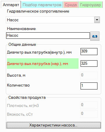 диаметр рабочего колеса насоса - требуется только при расчете течений жидкостей, содержащих твердую фазу, так как от величины диаметра колеса насоса зависит поправка характеристики насоса на твердую фазу. Для жидкостей данный параметр можно не задавать;
