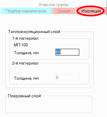 другие элементы изоляционной конструкции кроме теплоизоляционного и покровного не задаются, так как для расчета это не требуется;