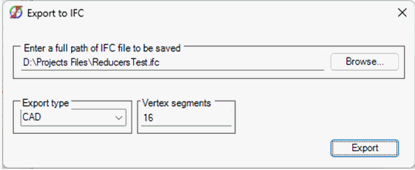 "Vertex Segments" – represents the division of a shape into a specified number of points (for example, a circle will be constructed from 16 points). This parameter should always be specified, as some objects may have more complex geometry that cannot be achieved using the CAD export type.