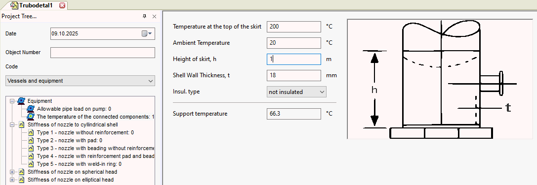 This analysis calculates temperatures for column skirts, supports, trunnions, and other connected components.