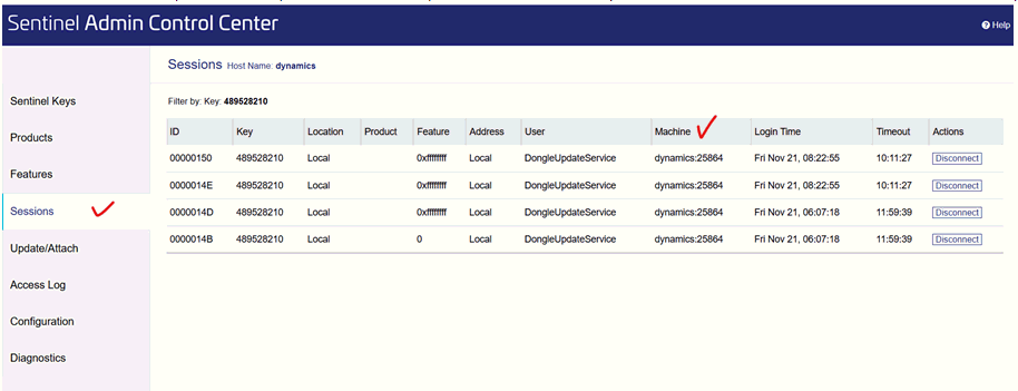 Sentinel LM uses TCP/UDP port 1947. After service installation/start, monitor dongles via web browser: