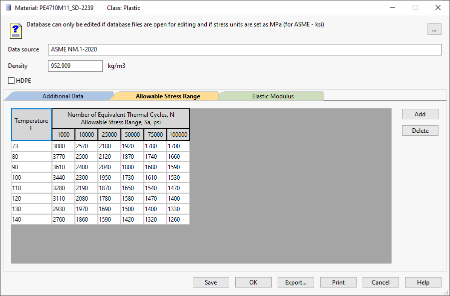 The "Add" and "Save" buttons are disabled if the file is read-only or if the stress units are not set to MPa.