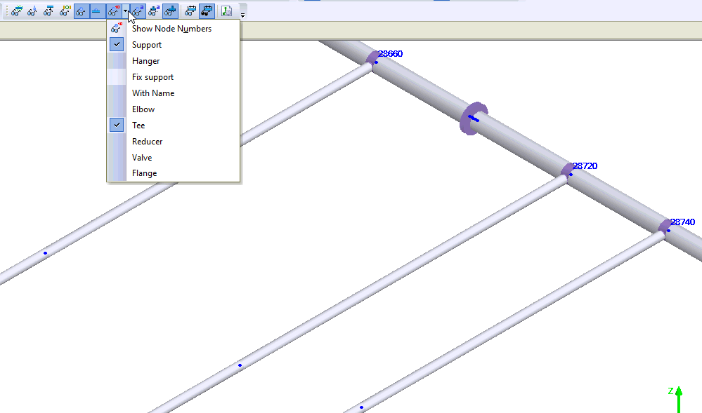Added ability to insert fittings and supports into a selected group of nodes