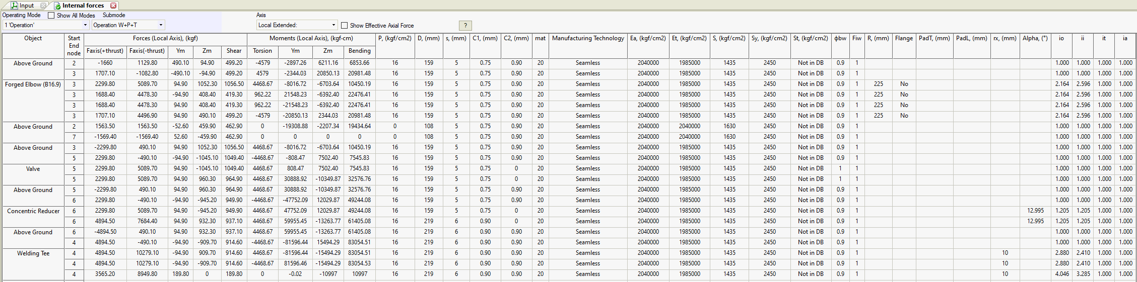 For tees, forces in run pipes display at sections 1 and 2 of node N (Fig. 2d). Forces in branch pipes display at section 3 of a dummy node located at half the run diameter from node N.