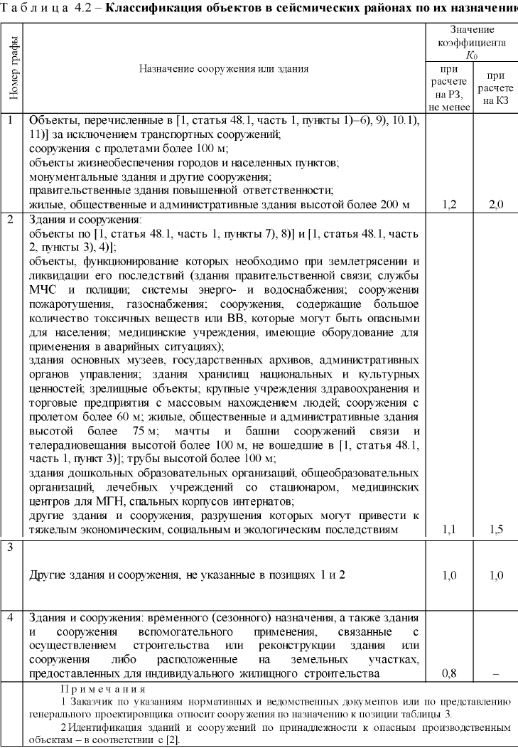 Пиковое ускорение грунта вычисляется определяется по таблице: