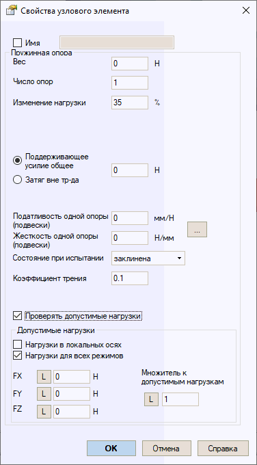 задать допускаемые нагрузки для строительных конструкций, к которым прикреплены пружинные опоры и подвески. Используется в случае, если допускаемая нагрузка меньше, чем допускаемая нагрузка на пружину |
