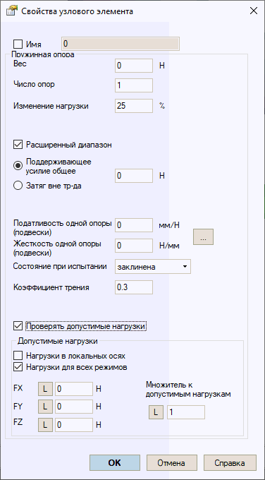 задать допускаемые нагрузки для строительных конструкций, к которым прикреплены пружинные опоры и подвески. Используется в случае, если допускаемая нагрузка меньше, чем допускаемая нагрузка на пружину |